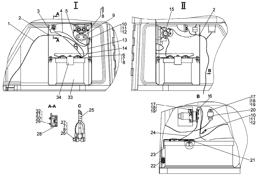 2 При установке батареи 6CT-190A «Востоксибаккумулятор» применяется Болт M8-6g×35.88.35.019, 4 шт.